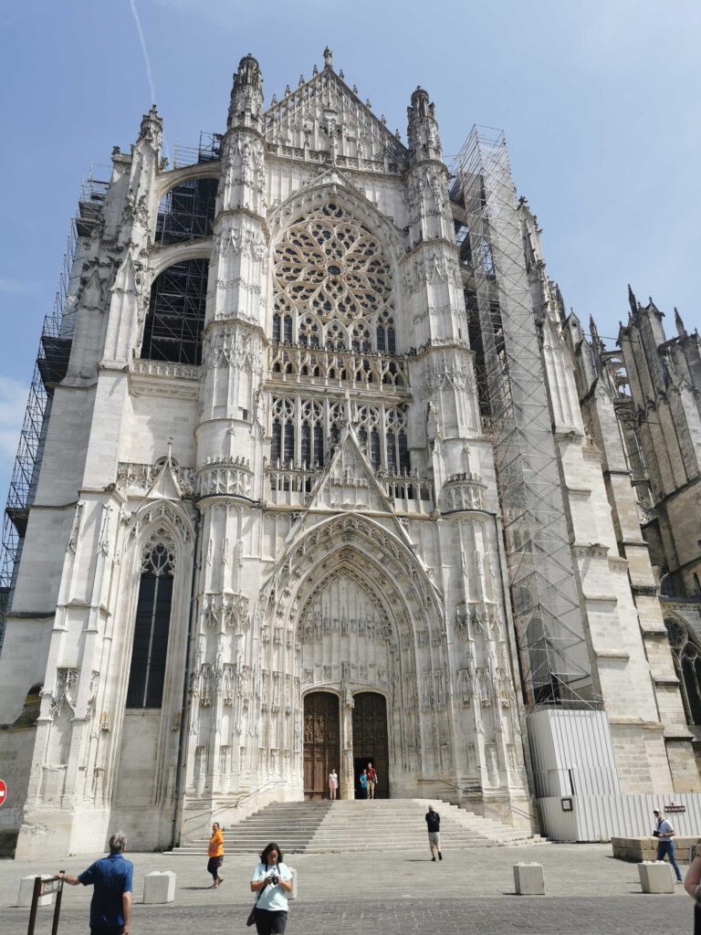 Schon der letzte Tag unserer Reise – aber es ging noch weiter mit den Highlights: Château Gaillard in Les Andelys bot beeindruckende Ausblicke und dramatische Geschichte. Erbaut wurde es von Richard Löwenherz, dem König von England und Kreuzritter, um die Seine zu kontrollieren. Die Burg war ein Meisterwerk mittelalterlicher Militärarchitektur, hielt aber der Belagerung durch Philipp II. von Frankreich nur kurz stand. Eindrucksvoll bis heute ist sie dennoch. Letzter Halt: die gewaltige Cathédrale Saint-Pierre de Beauvais. Diese gotische Kirche ist berühmt für ihr kühn in die Höhe strebendes, aber statisch problematisches Konzept – mit einem Chor, der als der höchste der Welt gilt. Das Bauwerk war vielleicht zu wagemutig geplant und stürzte teilweise ein, doch bis heute steht es als beeindruckendes Zeugnis menschlichen Glaubens, ehrgeiziger Visionen und architektonischem Drang, den Himmel mit Steinen zu erreichen.