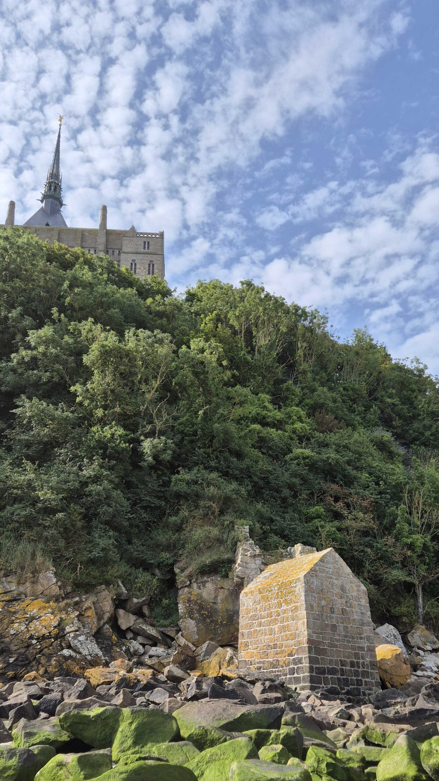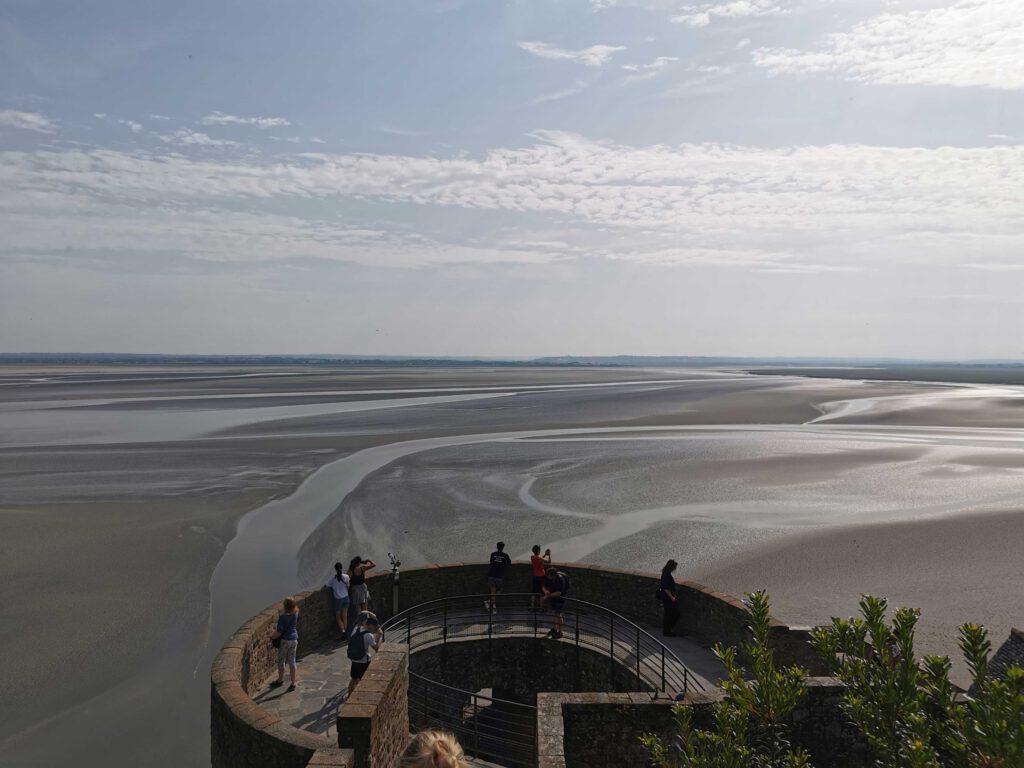 Rund um die Insel zeigt sich die Natur von ihrer dramatischen Seite: Der Tidenhub gehört hier zu den stärksten in Europa. Innerhalb weniger Stunden zieht sich das Meer kilometerweit zurück, nur um später mit erstaunlicher Geschwindigkeit wiederzukehren. Bei Ebbe ist der Mont-Saint-Michel zu Fuß durch das Watt erreichbar, bei Flut wird er so zur Insel – ein Schauspiel, das die Besucher seit Jahrhunderten in seinen Bann zieht. Einige von uns wagten es sogar, den Mont-Saint-Michel einmal vollständig zu umrunden – eine eindrucksvolle Erfahrung, die den Wechsel von Nähe und Distanz zu diesem Bauwerk besonders spürbar machte.