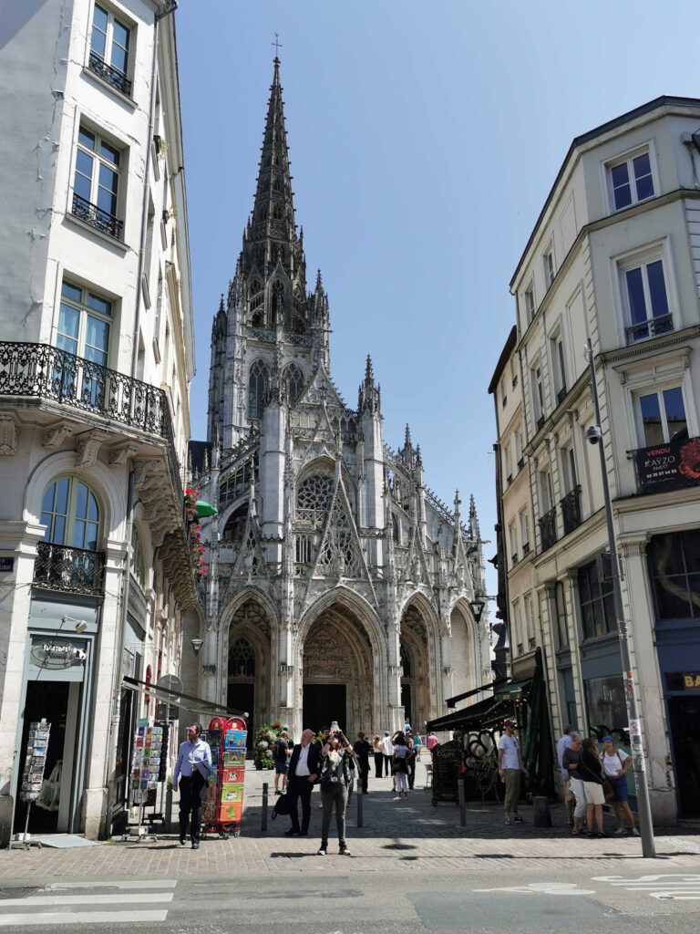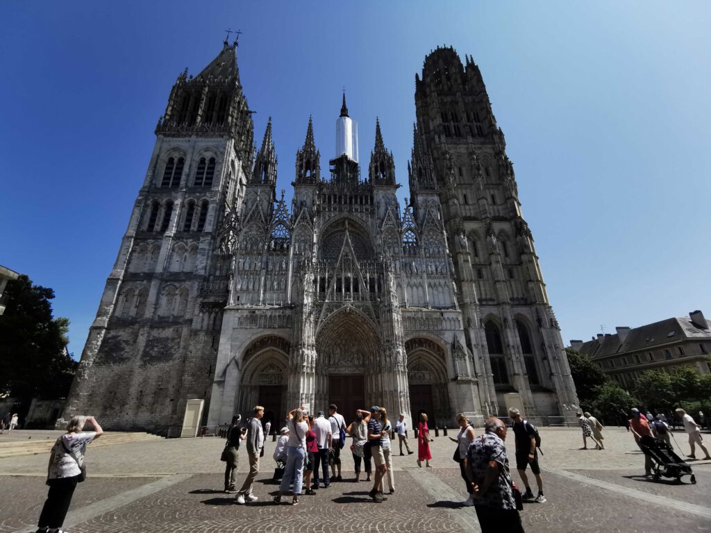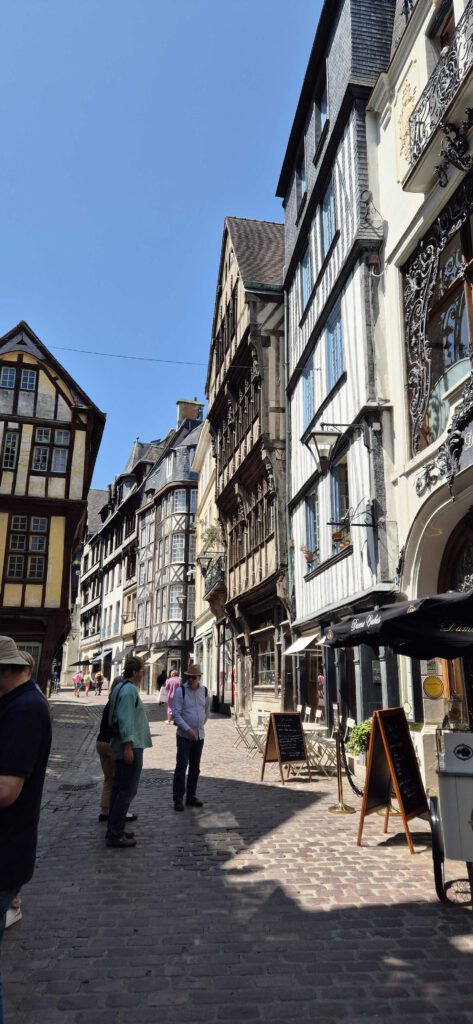 Danach ging es weiter nach Rouen, der Hauptstadt der historischen Normandie. Hier wurde Jeanne d’Arc 1431 zum Tode verurteilt und auf dem Scheiterhaufen verbrannt. Auf unserem Rundgang mit dem wie immer großartigen Stefan Leenen lernten wir nicht nur die Altstadt mit ihren Fachwerkhäusern kennen, sondern erfuhren auch viel zur historischen Bedeutung dieser Stadt als wirtschaftliches und religiöses Zentrum des Mittelalters.